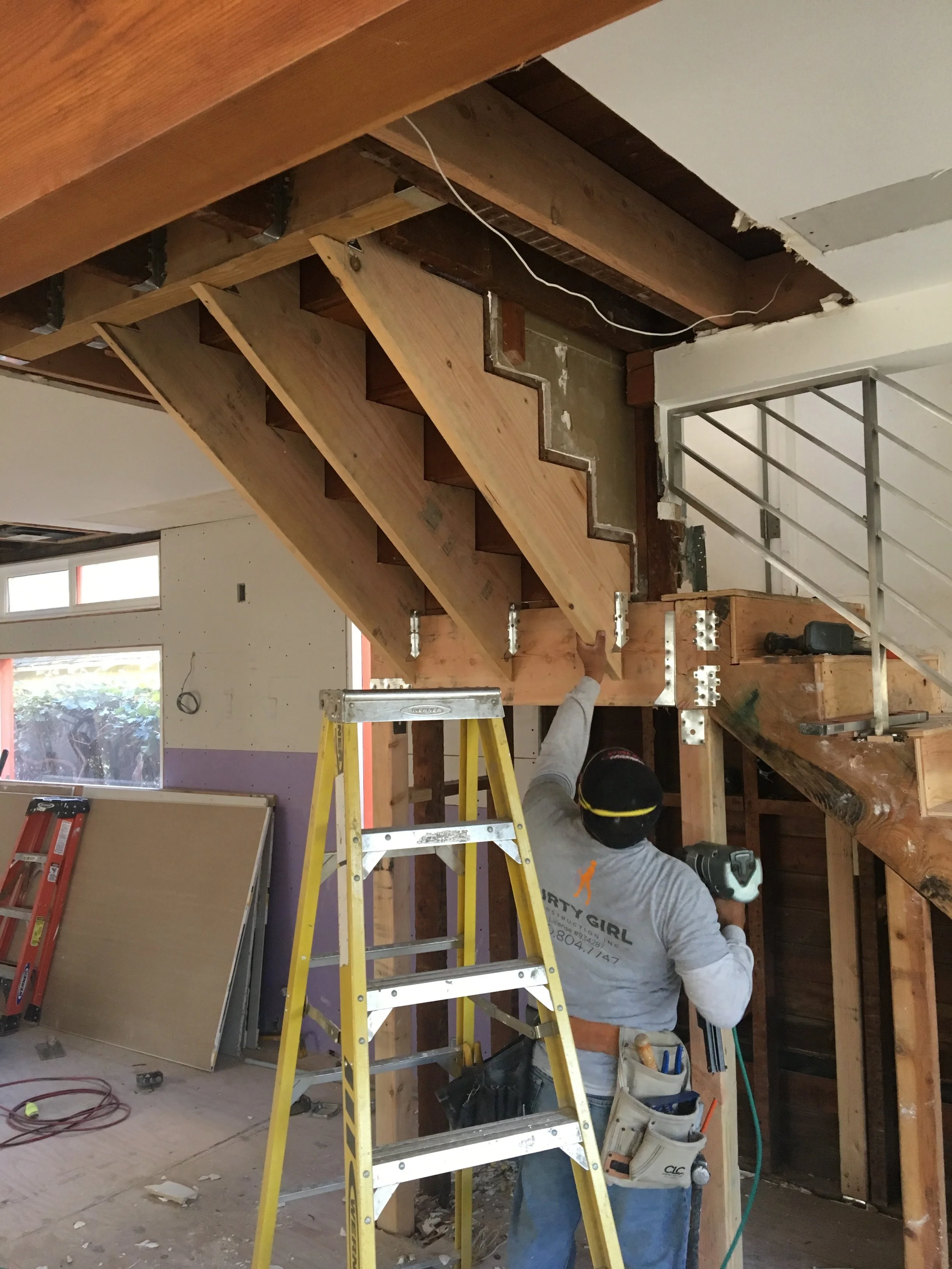 Below is a photo of what a staircase is NOT supposed to look like. If you're in the industry, I'm sure you're eyes are popping out of your head right now and "WTF" is ping-ponging around in your brain as you look for any indication of true structural support. Good luck finding it!